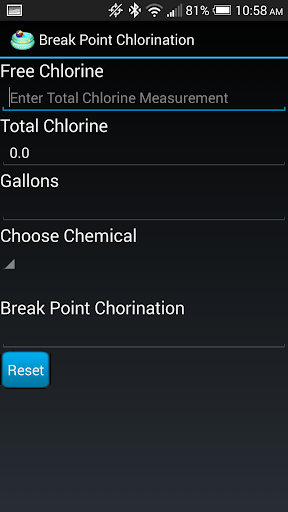 Easy to use Pool chemical calculator. Never guess again, be confident that your pool will not hurt any one.