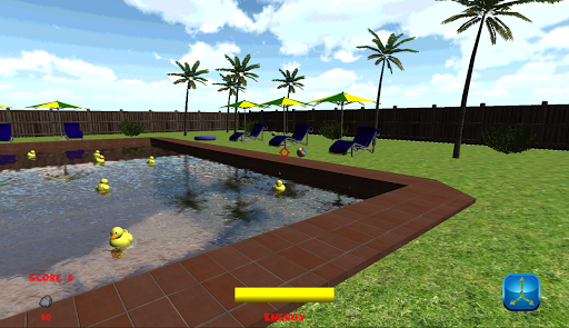 Your pool is infested by yellow rubber ducks. Shoot down as many of them with your rocks as you can. Move the crosshair by tilting your device then tap to shoot. If you hit your target you won't lose the stone you used. Share your high score with the in built facebook share function.