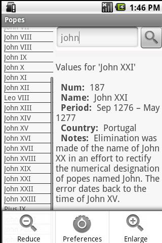 All the Popes (and most Anti-Popes) from Peter to Benedict XVI listed in one easy to use off-line app. The paid for RefLibrary app lets you manage this and other datasets