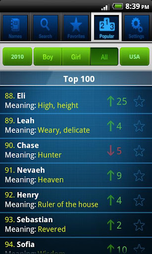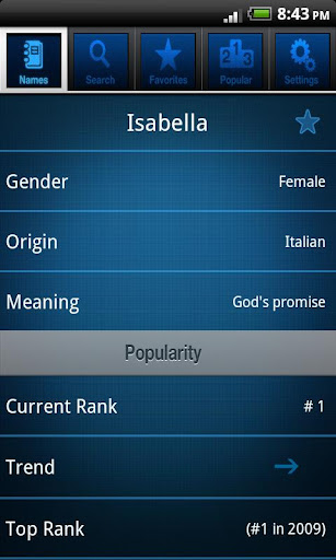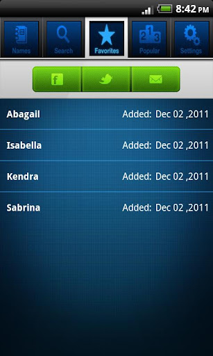 • Easily share favorite names over email, facebook, or twitter