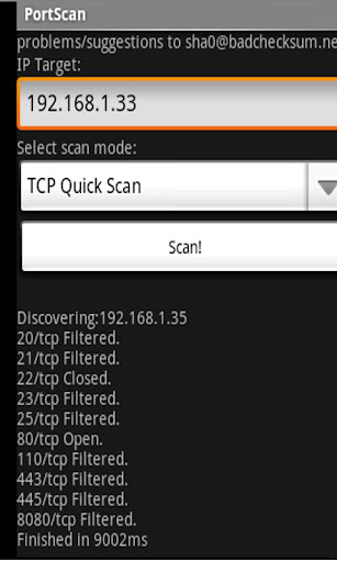 Android Portscanner, supports TCP, UDP and ICMP protocols.