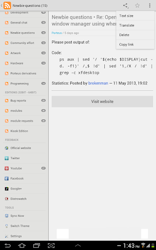 - browser facebook, twitter, distrowatch and google+ .