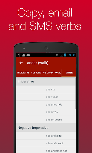 Not sure if this is the app for you? Try out the free, ad-supported version version (search for "Portuguese Verb Conjugator").