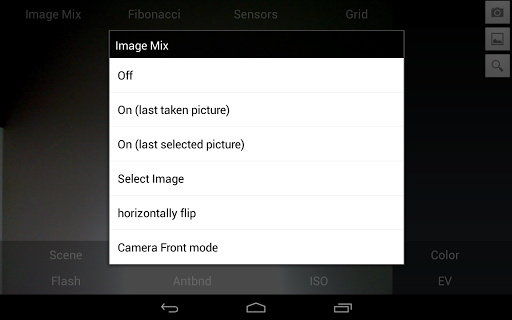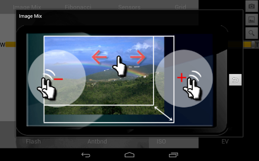 featuring sensors of roll, pitch and azimuth; grid lines and indication shapes; image mix for making the same composition as particular photos with 10 steps of opacity setting; Fibonacci lines for guiding beautiful compositions; and more.