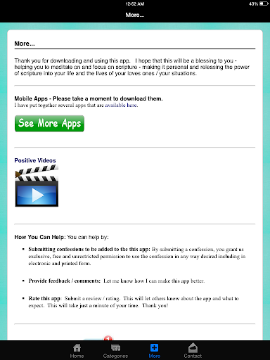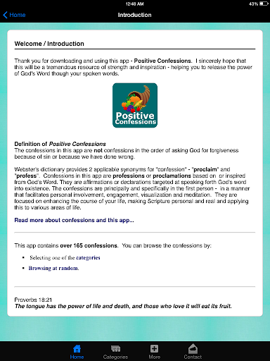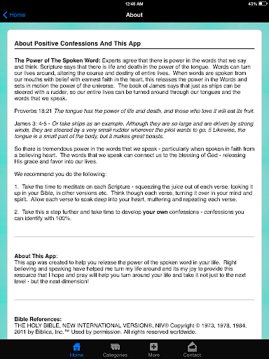 - The app provides over 165 Scripture-based confessions that will help you tap into the blessings of God by releasing the spoken word from your mouth.