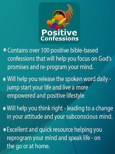 - It will help you make positive confessions a part of your life by providing in a handy mobile form, confessions you can start using immediately – and each and every day.