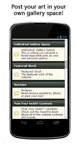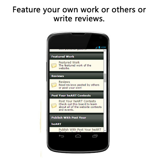 Description: This art sharing app is open for everyone to advertise whatever they want to draw traffic to their personal online websites and to network with other artistic people.