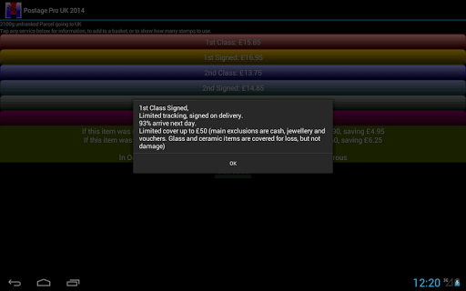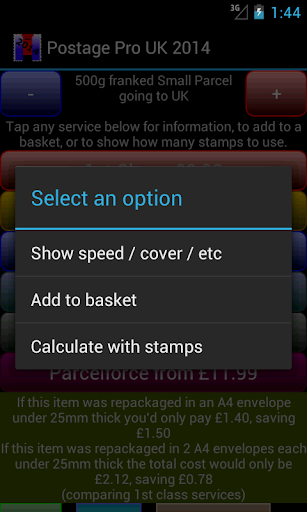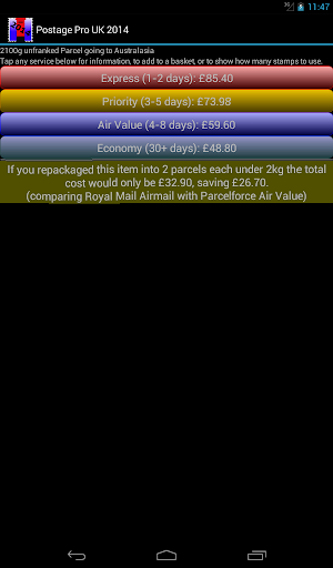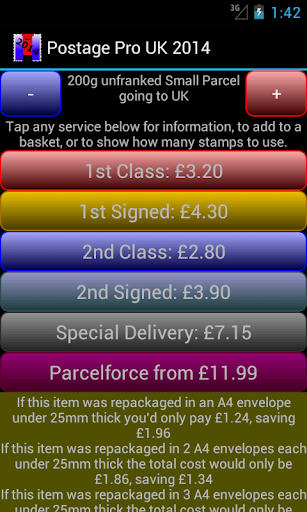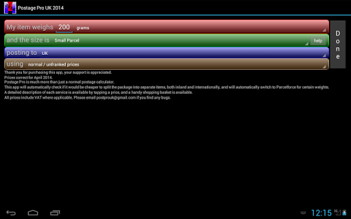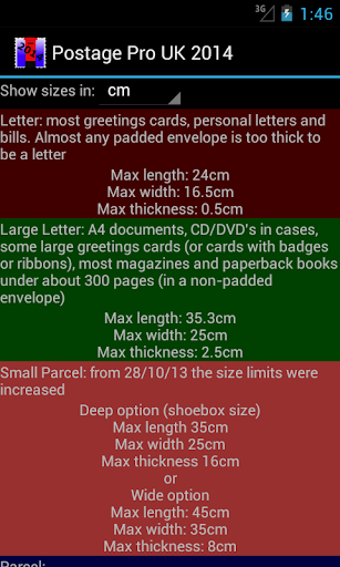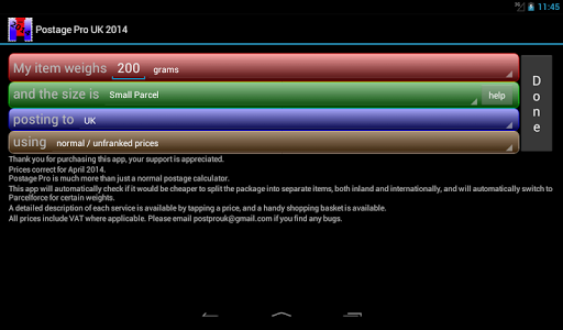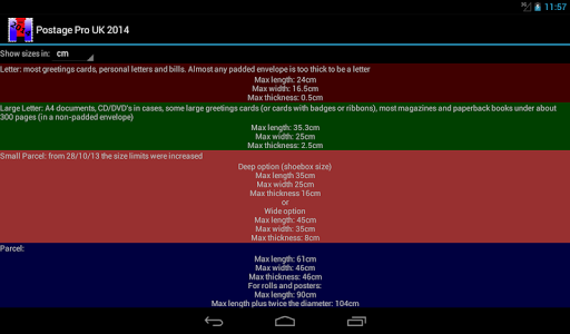 Postage calculator for Royal Mail and Parcelforce, with the new March 2015 prices, including franked prices. Regular updates whenever Royal Mail change any prices.