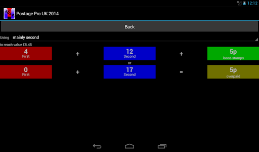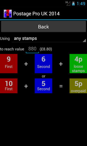 automatic calculation of the most efficient way to use 1st/2nd class stamps (eg.for a parcel costing £7.29, use 9x1st class and 3x2nd class)