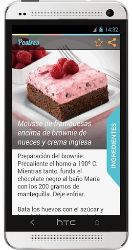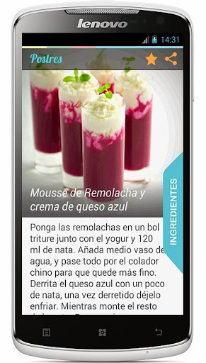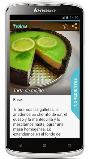 La aplicación “Postres” te enseña a preparar, de una manera fácil, deliciosas y variadas recetas de repostería, así como los dulces más tradicionales que no pueden faltar en tu colección tales como: Galletas, tartas, helados, postres de dieta, pasteles y mucho más.