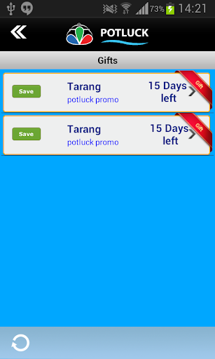 Potluck is a mobile app which can spring up surprises each time you visit your favorite restaurant, pub, cafe or saloon