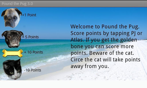 PJ is back this time she brought some of her friends with her. Pound the Pug 3.0 PJ is joined with Atlas and Circe the cat. In this game you have multiple levels and multiple background.