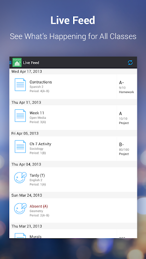 See live attendance, assignments, scores, grades and more, right from your teachers’ grade books.