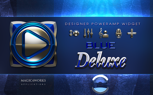 Blue Deluxe Poweramp Skin Theme gives your Poweramp Widget Pack a brand new luxury look and makes your smartphone and Tablet to a unique designer piece as Music Player.