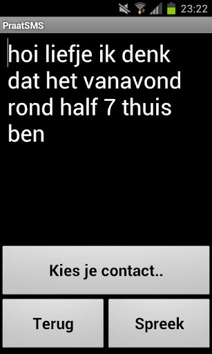 PraatSMS is een spraak naar tekst SMS app. Het ontwerp is eenvoudig en groot. Je kunt je SMS tekst gewoon uitspreken en het wordt voor je opgeschreven. Kies vervolgens een contact persoon en verstuur je sms!