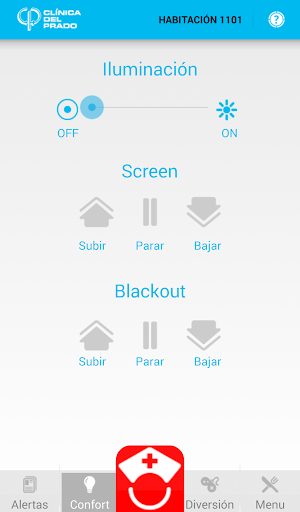 Esta aplicación te permite llamar a la enfermera desde tu celular. Con ella también podrás controlar la iluminación y persianas de tu habitación entre otras más funciones