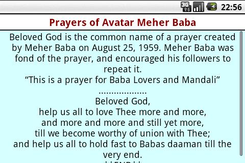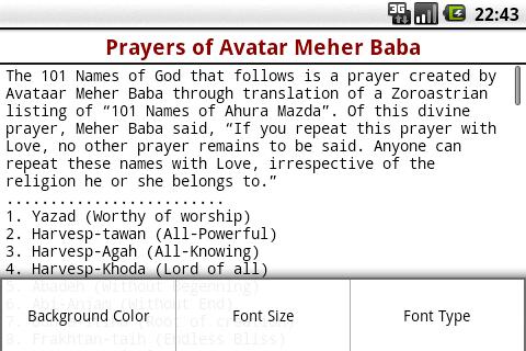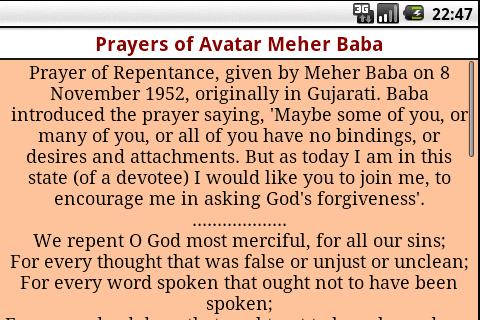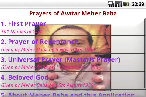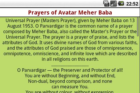 Prayers of Avataar Meher Baba application provides you with options of reading following prayers: