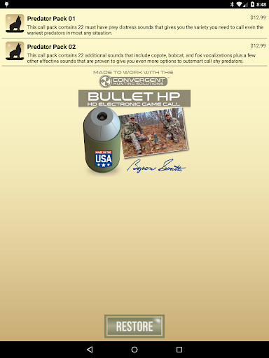 Predator Pro comes equipped with 6 sounds in the free, base version of the app. There are additional expansion packs available via in-app purchase that will allow you to upgrade and expand your calling capabilities.
