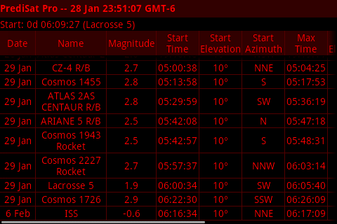 PrediSat grabs Iridium flare and satellite pass data from Heavens-Above.com and conveniently formats it on your phone. It also includes a few features to help you spot satellites, such as alerts, countdown, and night mode.