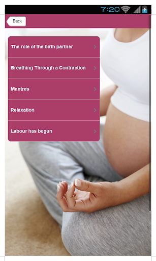 Using this App is an opportunity for both the pregnant woman and her birthing partner to learn relaxation, breathing and massage techniques. It will show you how to recognise signs of tension in your body and therefore help you to release tension and achieve a more calm and relaxed manner.