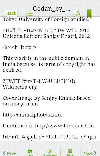 By downloading this Premchand ebook app you will be able to read some great books absolutely free. Books like Devasthan Rahasya, Prema , Krishna, Roothi Rani, Vardaan, Soz-e-Watan, Premashram, Rangbhoomi , Kaayakalp, Pratigya , Bewa, Gaban, Karmabhoomi, Mangalsootra , Godaan are a part of this amazing app. All you need to do this go ahead locate the book you want to read on the shelf and tap on it to begin reading.