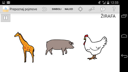 - odabir simbola za podučavanje i pregled razina usvojenosti i proteklih naloga za pojedini simbol