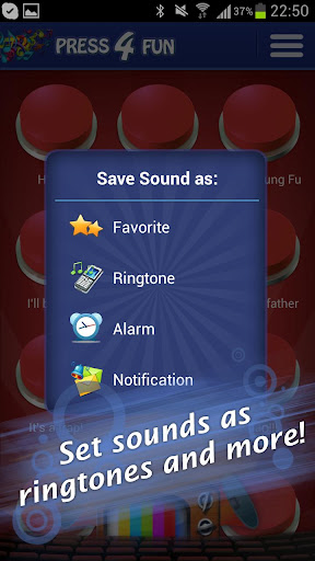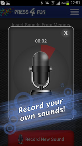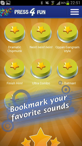 With Press4Fun your life won't be a sea of depression anymore, you'll have more than 200 sounds at your disposal to have fun! One sound for each occasion, from unforgetable movie & tv series memorable quotes to the most catastrophic explosion, and if by chance you don't find the right sound (which we find quite unlikely) fear not! You can prove you can do better to the world and record your own sound!