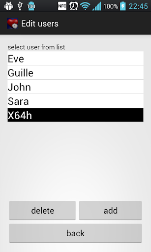 When you first execute it, it asks for an User's name. After that, you will be able to add or delete more users by touching on the blue name of the current user.