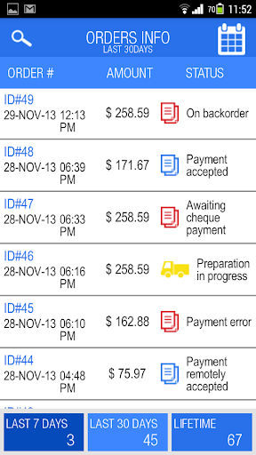 -PrestaShop Mobile Dashboard provides a quick look at the orders that are pending and which need your attention.