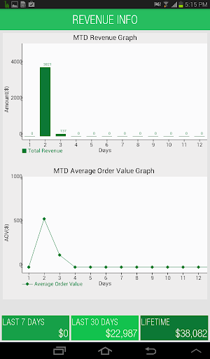 -Get detailed information about each aspect of your e-commerce business by tapping the relevant widget. For example, if you want to know your revenue trend, just tap on the revenue widget and you can see the month till date revenue chart.