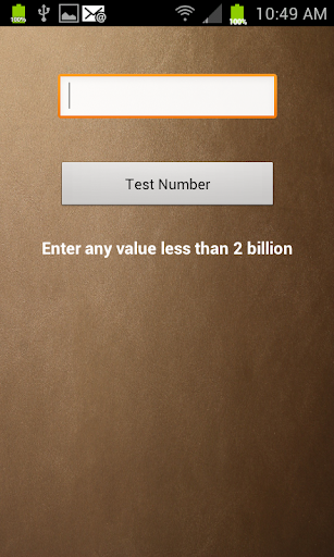 So you have a number, any number less than two billion, and for some reason you need or want to know if it’s a prime number. Well with this prime number tester app you can find out immediately. Simply enter the number press test and Walla, now you know. Enjoy.