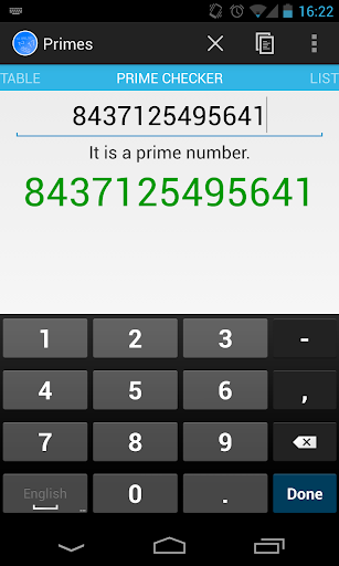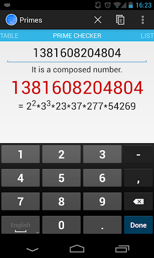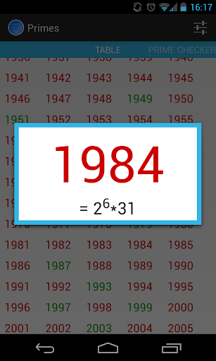 - Primes can display a table of integers with prime numbers in a different colour than composed numbers.