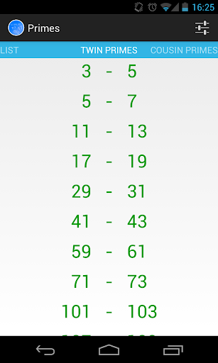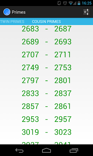 - Primes can also display a list of twin primes or cousin primes. Did you know that 22961 and 22963 are twin primes ?
