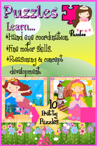 The next petal of fun in the fairytale land game app is the beautiful and sweet toddler princess puzzles that will keep ages 4 & up princess happy! Little princesses will adore the princesses puzzles including a ballerina princess, a fairy princess, Princess and the Pea, and a princess wedding! And playing the toddler princess puzzles will also promote: