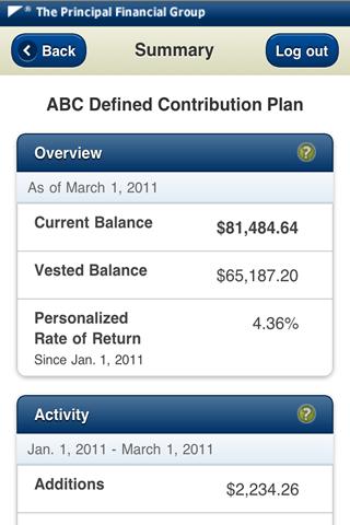 Log in to the app for retirement account information and : *