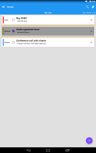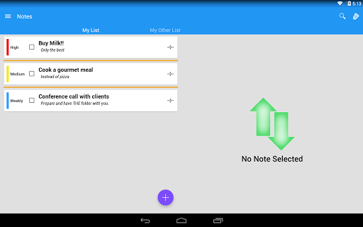 Priority list allows you to manage multiple notes/tasks with realistic and adjustable priorities.