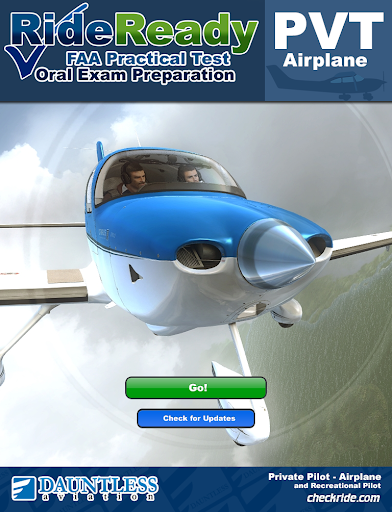 Are you a student pilot or would you like to become a Private or Professional Pilot? RideReady will help make you confident and ready for your FAA Practical Test / Checkride (that combination of flight test and oral quizzing when you will have to go through to receive your Private Pilot certificate) and allow you to impress the examiner with your knowledge of relevant knowledge areas as per the Practical Test Standards and current FAA practices and recommendations.