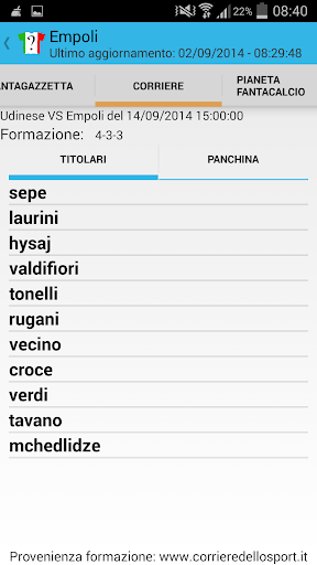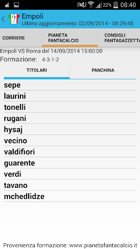 Da oggi puoi vedere tutte le probabili formazioni di serie A delle testate giornalistiche SportMediaset, Gazzetta dello Sport, Corriere dello Sport, TuttoSport e PianetaFantacalcio.