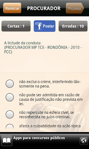 Este é um aplicativo de degustação do aplicativo pago “Procurador”. Ele tem 50 perguntas.
