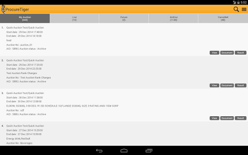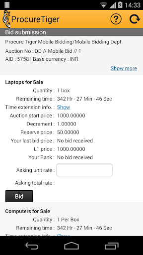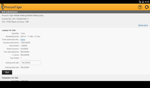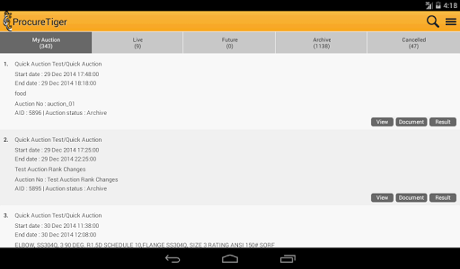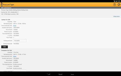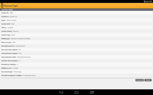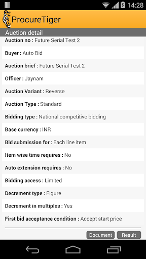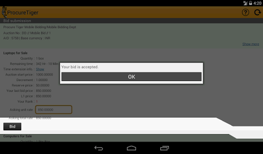 Online bidding made easy. ProcureTiger mobile app. allows to view auction notice, download document and submit your bid in Reverse auctions listed on ProcureTiger.com. You can also view auction result on real time basis. All you need to do is to download ProcureTiger mobile app. and to register yourself. It takes less than 2 minutes to register yourself.
