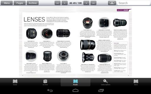 The Professional Photographer app provides access to a large number of editions of the magazine and you can purchase access to these as either a monthly or annual subscription.