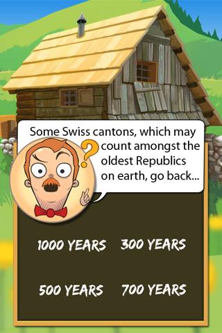 1. Questions are presented with possible answers displayed on the chalkboard, the topic of the question is displayed at the bottom of the screen.