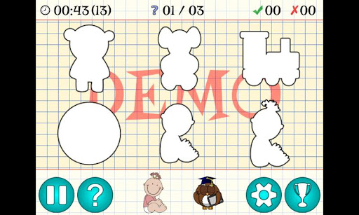 Mathematics and logic puzzles for preschool and first grade students. Twelve amazing puzzles for kids between 4 and 6 to practice and strengthen the skills necessary for the first grade. From the simplest "find the shape" puzzle to the toughest "find relations" game. This demo contains 4 games* out of the total 12 from the full application: