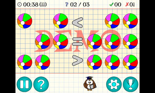 Keywords: demo, grade school, preschool, kindergarten, kids, education, child, children, game, games, cognitive skills, numbers, logic, math, mathematics, relation, relations.