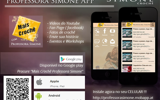 Aprenda a fazer artesanato em crochê, assistindo as vídeo aulas da Professora Simone diretamente no seu smartphone ou tablet