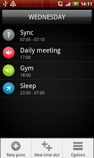 - The type "point" changes your phone state (ringer, vibrate, wifi, bluetooth, etc.).