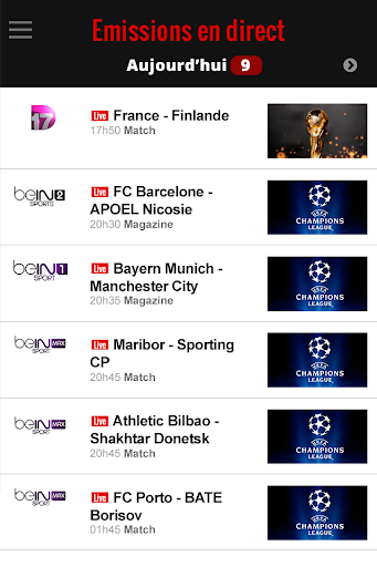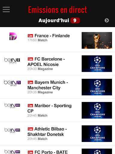 - Votre programme en direct : Emissions, matchs, magazines ;