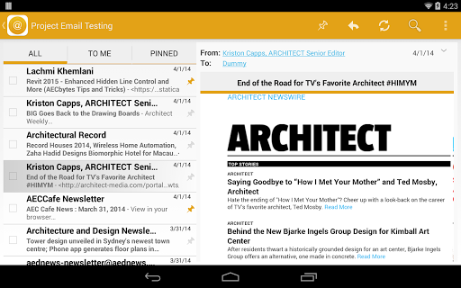 Newforma® Project Email App for Android provides instant access to your project email from the convenience of your Android smartphone. With just a couple taps, all of your Newforma Project Center project email is at your fingertips ready for searching, viewing and further action.