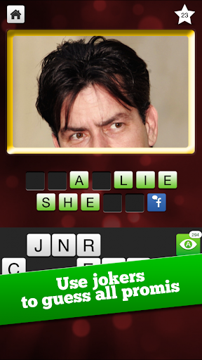 Tap the letters at the bottom of the screen in the correct order to guess the star. Additionally you can use jokers to show you the correct position of letters or to remove unnecessary letters. Or you can ask a friend via Facebook.