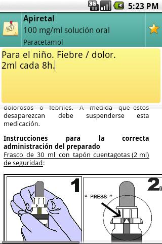 Puedes guardar una lista de "favoritos" en tu botiquín, y agregarles notas para consultar posteriormente (dosis que te ha mandado el médico, duración del tratamiento, etc)